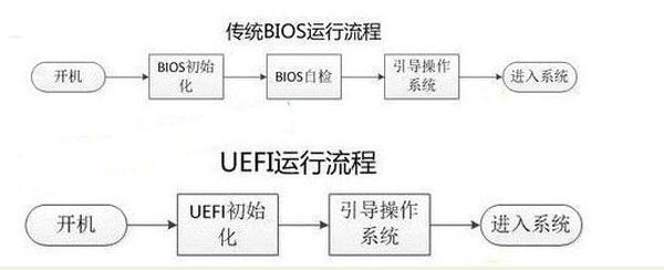 相信大家都熟悉bios,BIOS主要负责检测硬件,引导时引导操作系统;uefi的终极目标和bios一样。不同的是uefi在引导操作系统时不需要检测硬件,节省了引导时间。