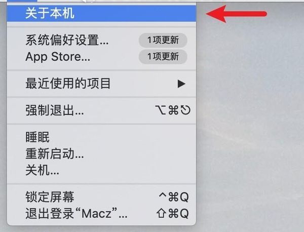 步骤1:单击苹果图标,并从下拉菜单中选择关于这台机器
