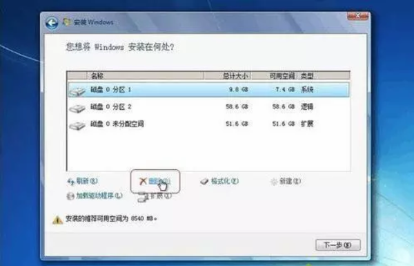 2.如果您不需要分区,只需选择分区1(类型为系统的分区),然后单击格式。如果要完全分区,请依次选择分区,然后单击删除。