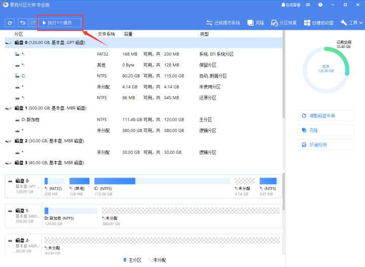 确定要执行操作时,点击软件左上角的待执行操作列表,选择应用以执行该项操作。