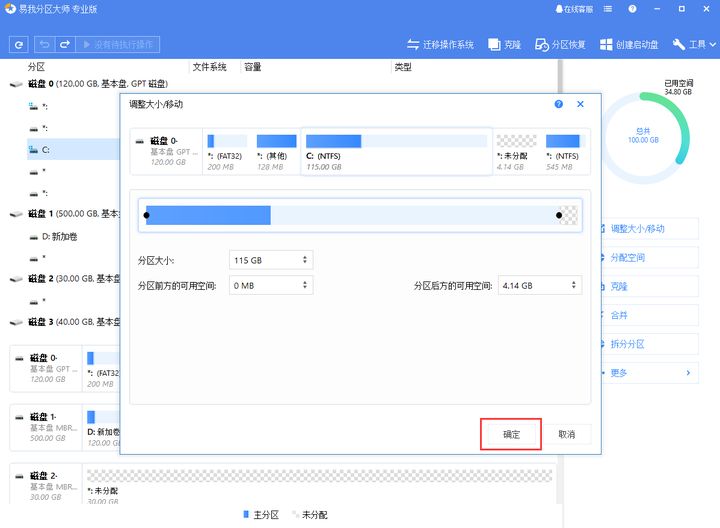 注意:1.使用易我分区大师调整无损分区的大小时,如果调整系统分区和引导分区(通常为C :),则易我分区大师将需要重新启动计算机以完成操作。