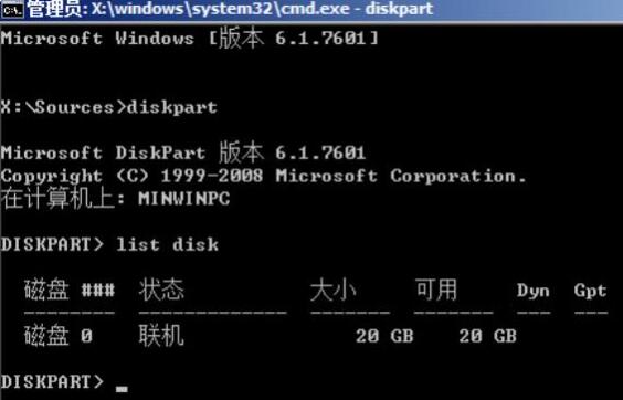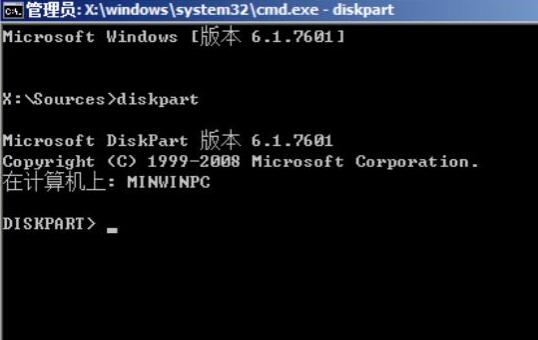 2、然后输入DiskPart代码,然后点击回车键进入DiskPart。