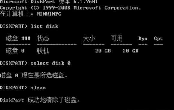 5.输入清除代码,然后单击进入磁盘分区进行格式化。