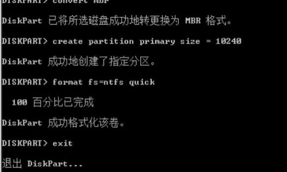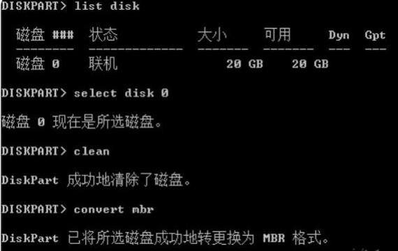 6.输入转换MBR代码,然后单击回车,将当前磁盘分区设置为MBR。
