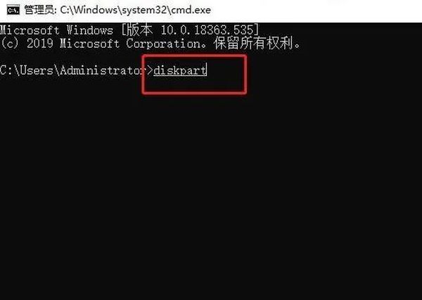 1.以管理员身份运行' cmd '命令,然后输入' diskpart '命令。