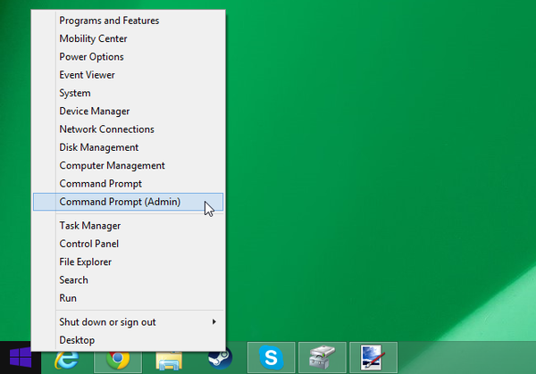 Windows 8或8.1:右击屏幕左下角,选择命令提示符(管理员)。