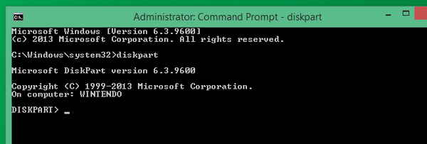 打开命令提示符屏幕后,输入diskpart并按回车键。此命令启动高级磁盘分区任务的实用程序。
