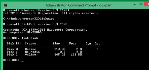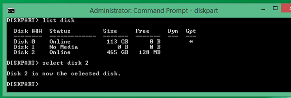 接下来,键入列出磁盘命令,让计算机显示连接到它的所有磁盘。