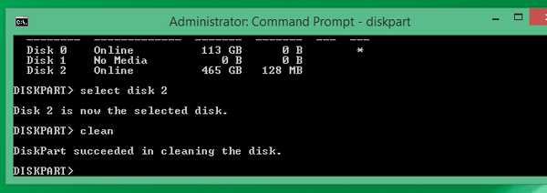 清理过程可能需要几秒钟或几分钟,完成时间取决于分区上存储的数据量。完成该过程后,您将收到成功通知。然后输入退出关闭命令提示符屏幕。