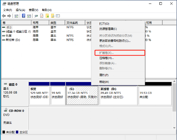 缩小D分区以扩展C分区